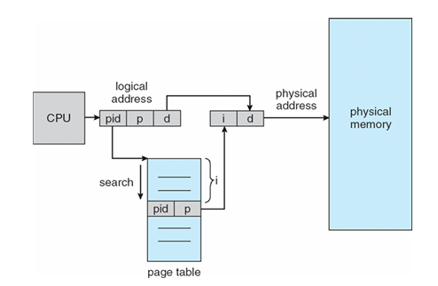 기존의 논리 주소는 (페이지 넘버, 오프셋 넘버)로 구성되어 있었다면, 이 시스템에서는 (프로세스 아이디, 페이지 넘버, 오프셋 넘버)로 구성된다.