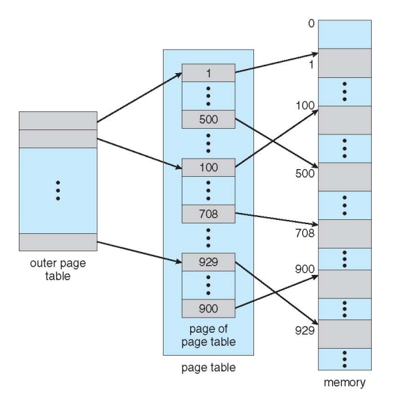 이렇게 2^10개의 공간이 여러 곳에 2^10개 분할되어 저장되므로, 기존의 페이지 테이블이 연속적으로 너무 컸던 문제를 일정 부분 해결한다. 계층은 2개 이상으로 나눌 수 있고, 이는 설계자의 몫이 되겠다.