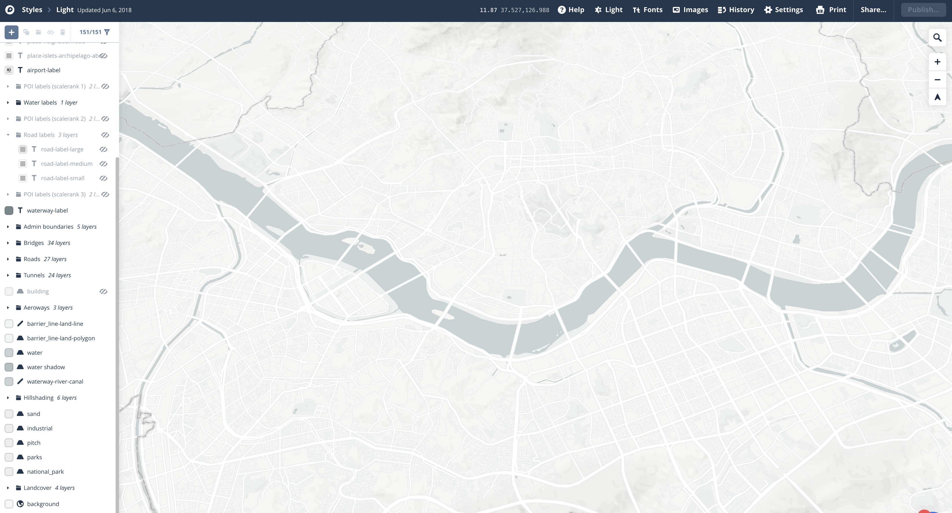 그리고 오른쪽에 보면, 이 basemap 을 이루고 있는 데이터들이 각 레이어 단위로 있는 것을 확인할 수 있습니다.