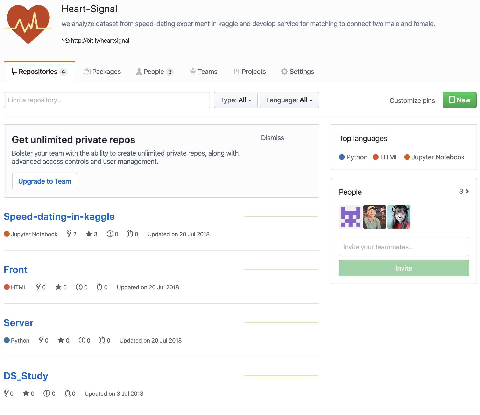 그리고 업무를 분담하여, 한 명은 프론트, 한 명은 백엔드, 한 명은 리서치를 담당하였다.