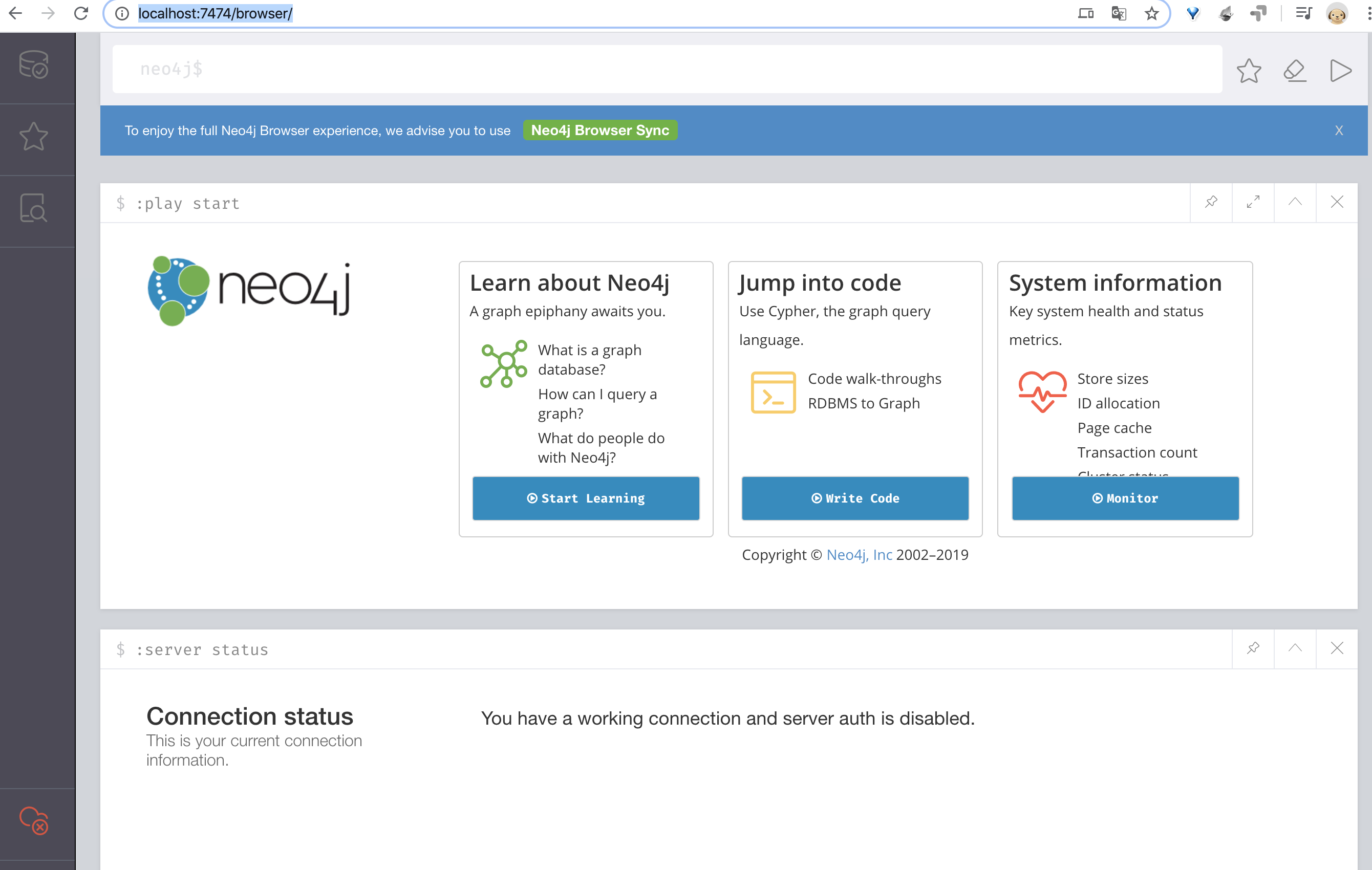 localhost:7687/browser 로 DB 클라이언트에 접속할 수 있다.