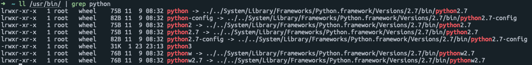 하나 다른건, python3 는 그 자체로 그냥 실행하는 파일인데, python2 는 symbolic link 로 다른 경로에 실행파일이 있다는 것... (근데 왜 다른 경로에 있는지 모르겠다. 헷갈리게.)
