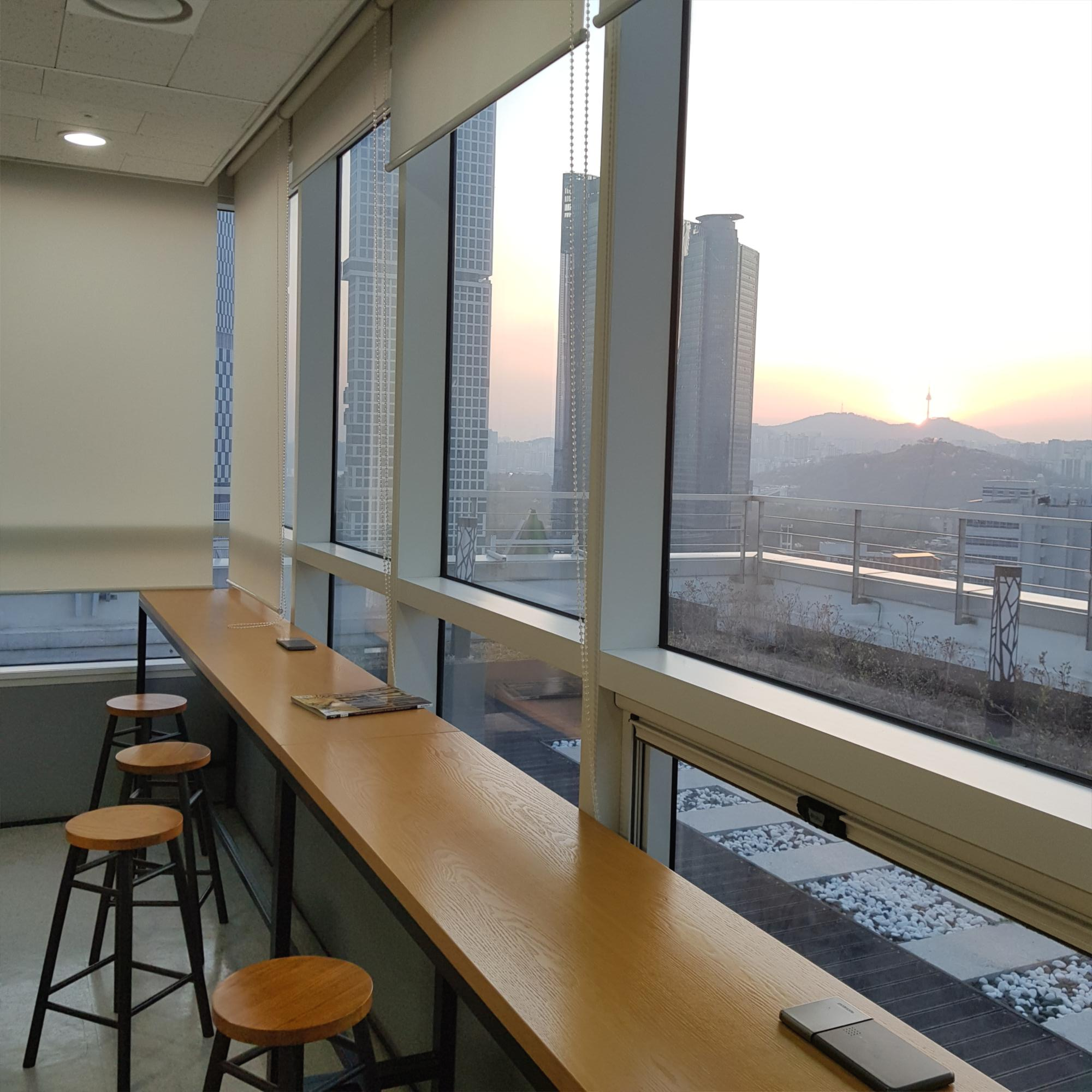 회사의 활기차고 젊은 분위기도, 15층에 위치한 사무실의 위치도 모두 좋다.