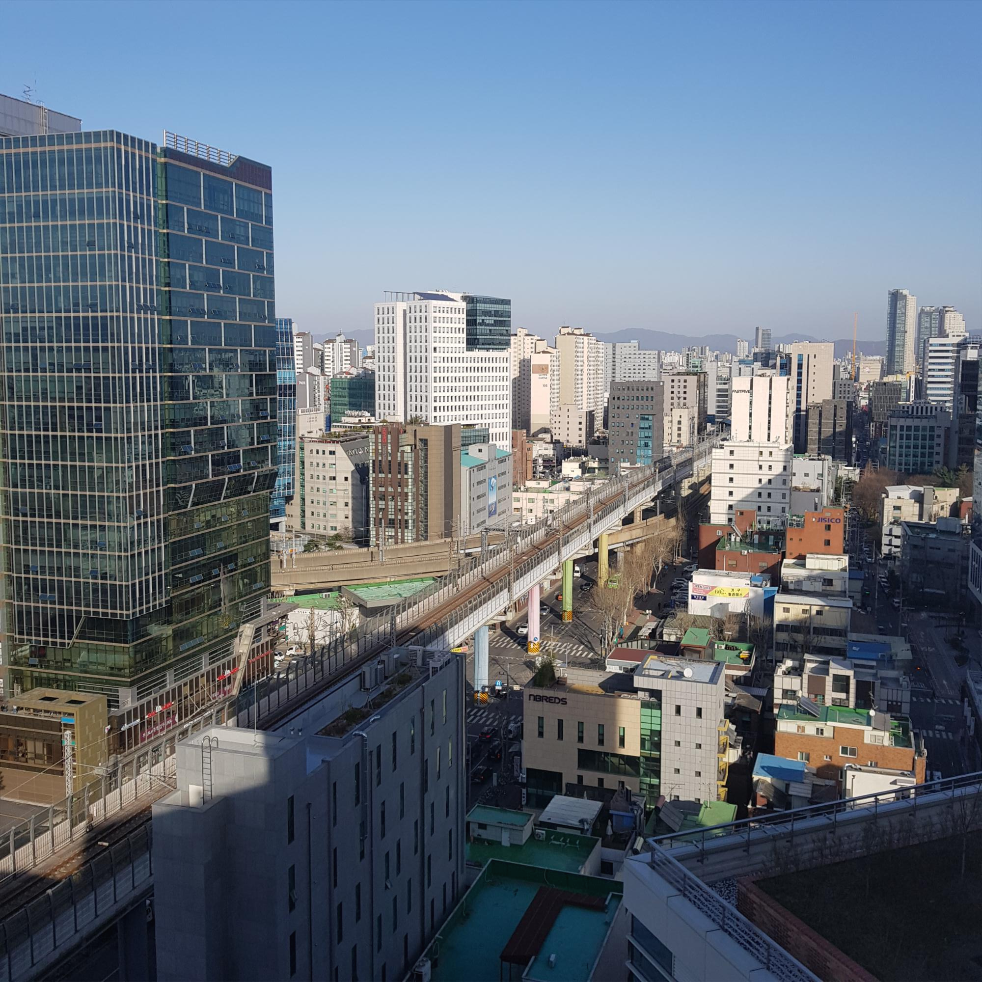 15층 위에서 보이는 뷰. 2호선이 도심를 가르는 이 뷰를 제일 좋아한다.