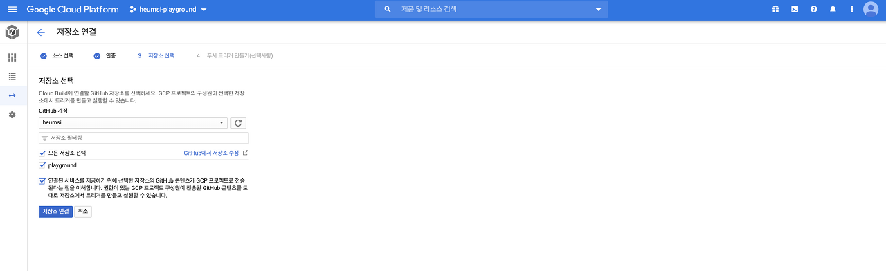 4. cloud build - 깃허브 저장소 연결