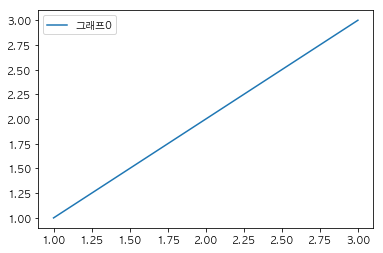 plt.plot([1,2,3], [1,2,3], label="그래프0")