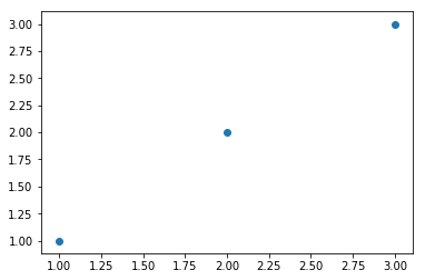 # (1,1), (2,2), (3,3) 에 점을 찍은 그래프를 그린다.