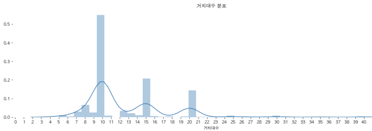 하나의 따릉이 대여소에는 따릉이를 거치해놓을 수 있는 여러 개의 거치대가 있는데, 이 거치대 수에 대해서도 한번 살펴보자.
