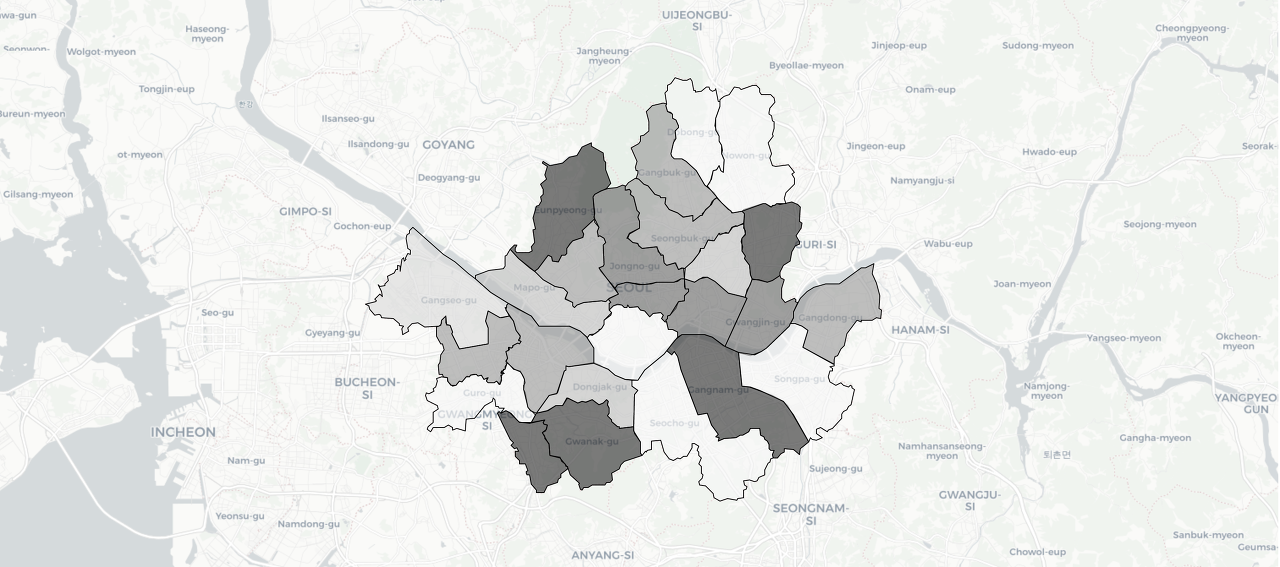 이를 보기 쉽게 지도로 시각화 하면, 아래와 같다.