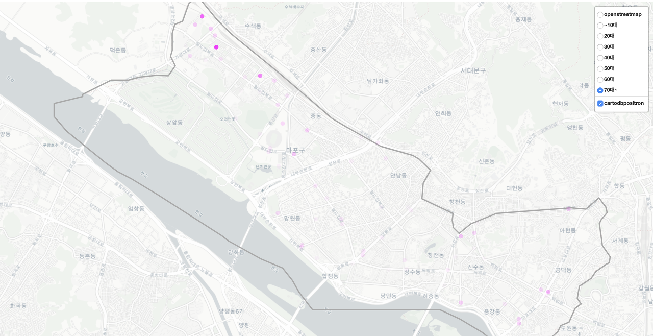70대의 경우도, 패턴이 확실하다. DMC, 그것도 DMC 내 특정 지역에 몰려있다.